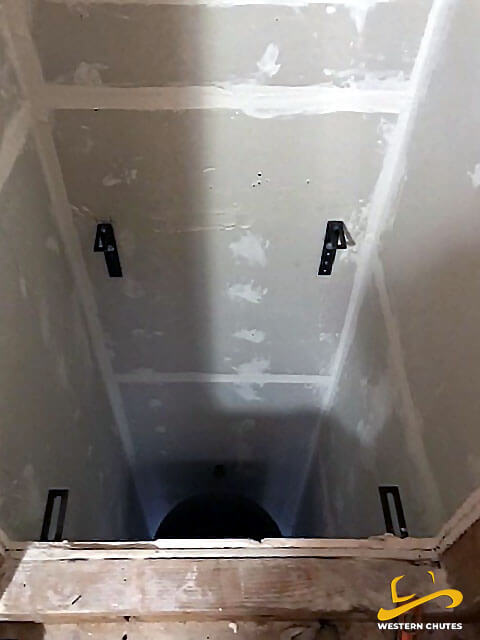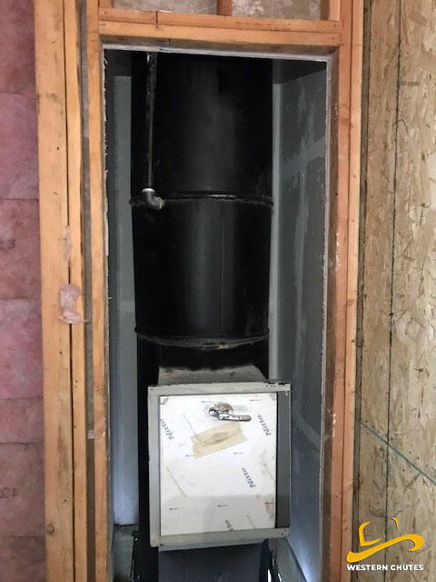 To ensure the simplest of installations while maintaining both code and UL compliance. The chutes are delivered with the adjustable intake doors attached, sound dampening applied, fire sprinklers, flushing head, and all other accessories installed on the chute ready for chute installation. Even the electrical interlocks are a 24vac Class 2 Plug & Play system with prefabricated UL listed cables. No Sheet Metal, Plumbing, Sprinkler, or Electrical permits, or professional trade training are required to install a chute.
